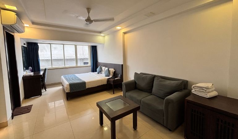 Hotel Supreme Vizag offers sea-view and non-sea-view rooms with modern amenities. Each room includes air conditioning, geyser, Wi-Fi, TV, and comfortable bedding. Guests enjoy daily housekeeping, spacious interiors, and attached bathrooms, ensuring a relaxing stay. Perfect for families or business travelers seeking comfort at The Supreme Hotel in Vizag.